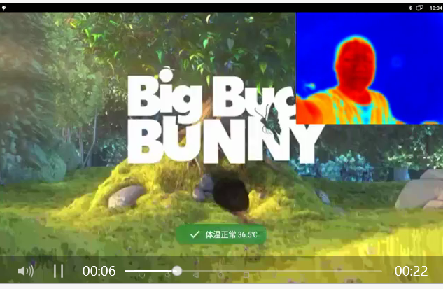在大屏上安裝熱成像雙光測溫模塊,直接實現廣告播放及多人測溫。有人時測溫,無人時播放廣告。