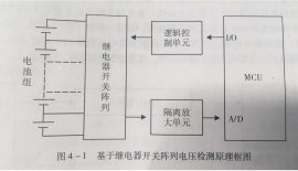 BMS中, 想要更大限度地利用電池存儲(chǔ)能力和循環(huán)壽命。那么可以選擇基于繼電器開關(guān)陣列的電壓檢測(cè)是常見的方案之一, 其原理就是利用繼電器開關(guān)陣列實(shí)現(xiàn)對(duì)各個(gè)單體電池選統(tǒng), 然后將被選通的電池的電壓通過隔離運(yùn)算放大器送入A/D轉(zhuǎn)換器,通過輪詢,依次實(shí)現(xiàn)對(duì)各個(gè)電池電壓的采集, 檢測(cè), 如下圖: