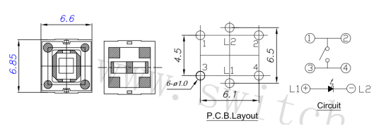 帶燈輕觸開關,一種帶有燈的輕觸開關,在沒有動作力的時候,開關沒有燈的顏色。當有動作力實施的時候,開關就會有相應的顏色。帶燈輕觸開關有單色燈和雙色燈可以選擇。LED燈的顏色可以選擇紅色、橙色、黃色、綠色、藍色、雙色等。一般帶燈輕觸開關的壽命最低達到10萬次,常規的還有20萬次壽命、50萬次壽命、高壽命也可達100萬次。
