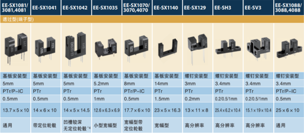 歐姆龍型號EE-SX1088,3088對射式光電開關可應用于:復印機、傳真機、開關掃描儀、打印機、門禁機、出卡機、車輛檢測器、跑步機、機器控制開關、投幣機、自動感應器等上面。