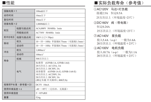 歐姆龍繼電器性能參數: