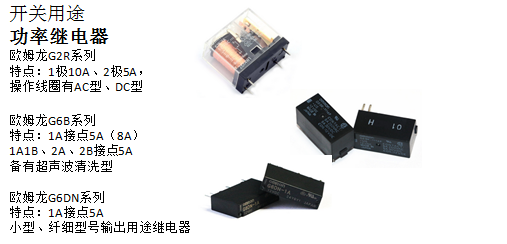 機(jī)床工作的過(guò)程中,通常需要通過(guò)電源、線圈、馬達(dá)、通電、通用外部輸出來(lái)進(jìn)行運(yùn)動(dòng)的傳輸,此時(shí)繼電器主要起開關(guān)作用,并且對(duì)繼電器觸點(diǎn)的開關(guān)容量、觸點(diǎn)可靠性、壽命要求比較高。可以選用以下歐姆龍功率繼電器: