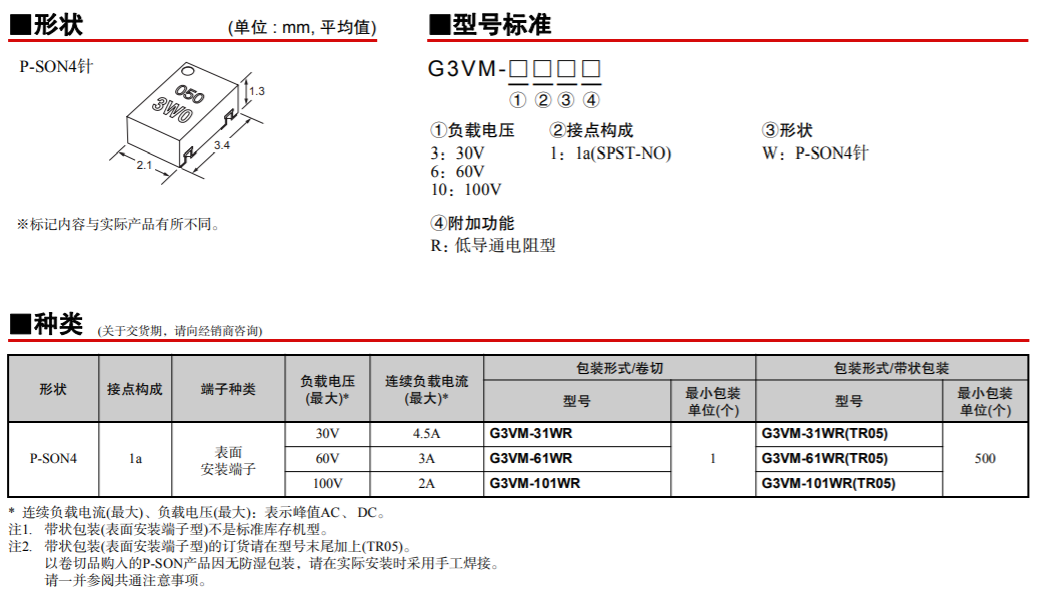 G3VM-31/61/101WR 光敏半導體MOS FET