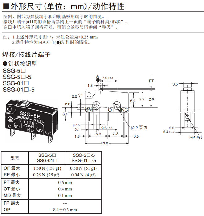 焊接端子 0.20 N {20 gf SSG-5L1H-5 SSG-01L1H-5