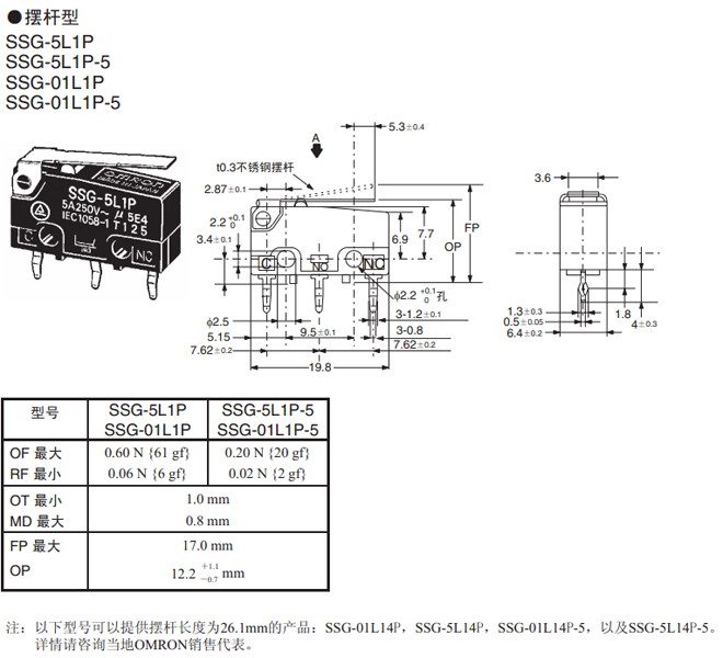 注:SPST-NO和SPES-NC型號的詳細情況,請咨詢當?shù)豋MRON銷售代表