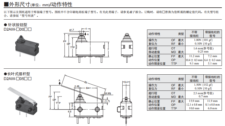 D2SW 密封型超小型基本歐姆龍開關