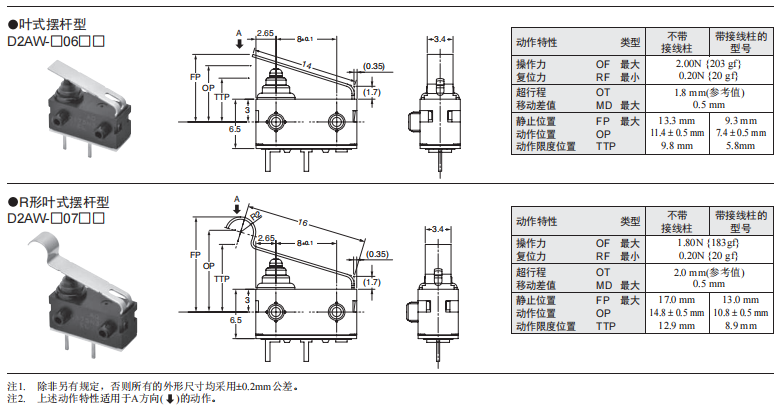 D2AW防水微動歐姆龍開關