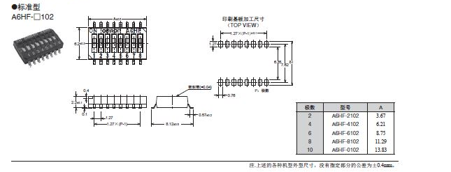 A6HF-□102(-P)滑動型DIP開關