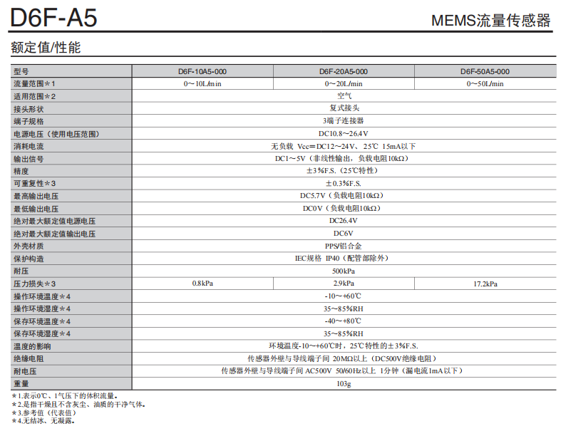D6F-A7/-N7/-L7燃氣流量歐姆龍傳感器